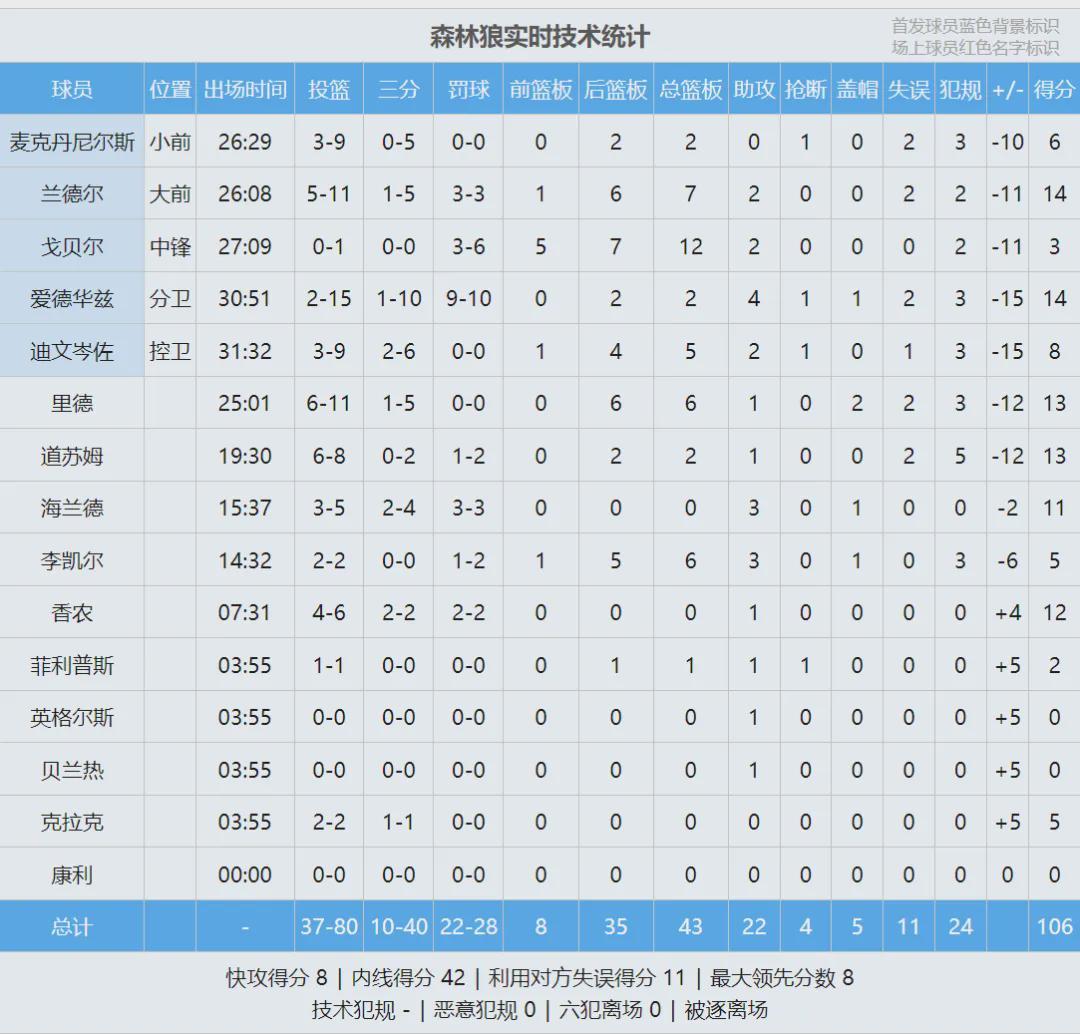 湖人本赛季和森林狼交手三次,这也是他们最后一次对决,湖人3-0横扫森林狼,这三场比赛詹姆斯都未出战。本赛季詹姆斯一共缺席12场比赛,湖人取得10胜2负,胜率高达83.3%。到了今年夏天,里夫斯和詹姆斯都面临续约。